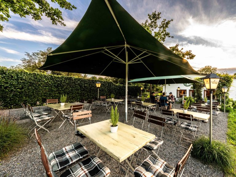 Entspannen Sie in unserem wunderschönen Biergarten - genießen Sie kühle Getränke, leckere Speisen und die gemütliche Atmosphäre unter freiem Himmel.