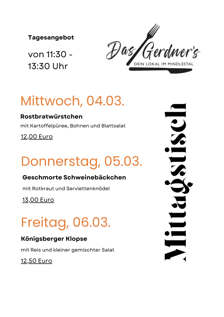 Dein Mittagstisch-Highlight von Mittwoch bis Freitag: Saisonal. Regional. Überraschend gut.