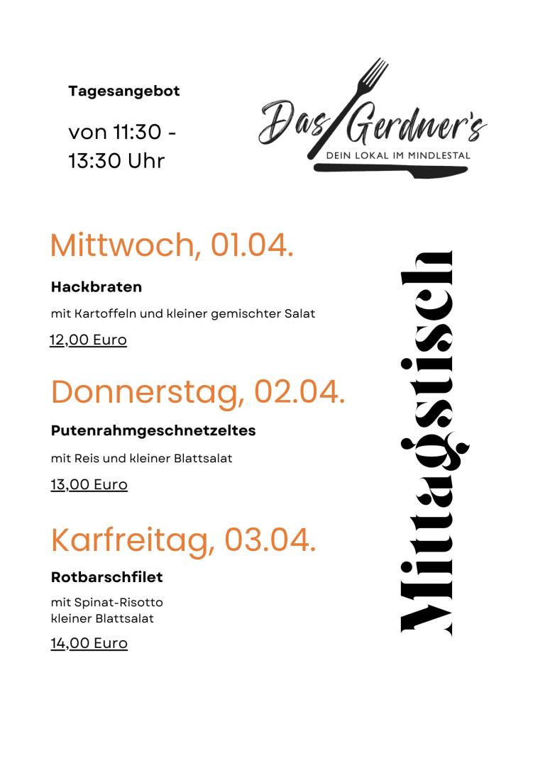Dein Mittagstisch-Highlight von Mittwoch bis Freitag: Saisonal. Regional. Überraschend gut.